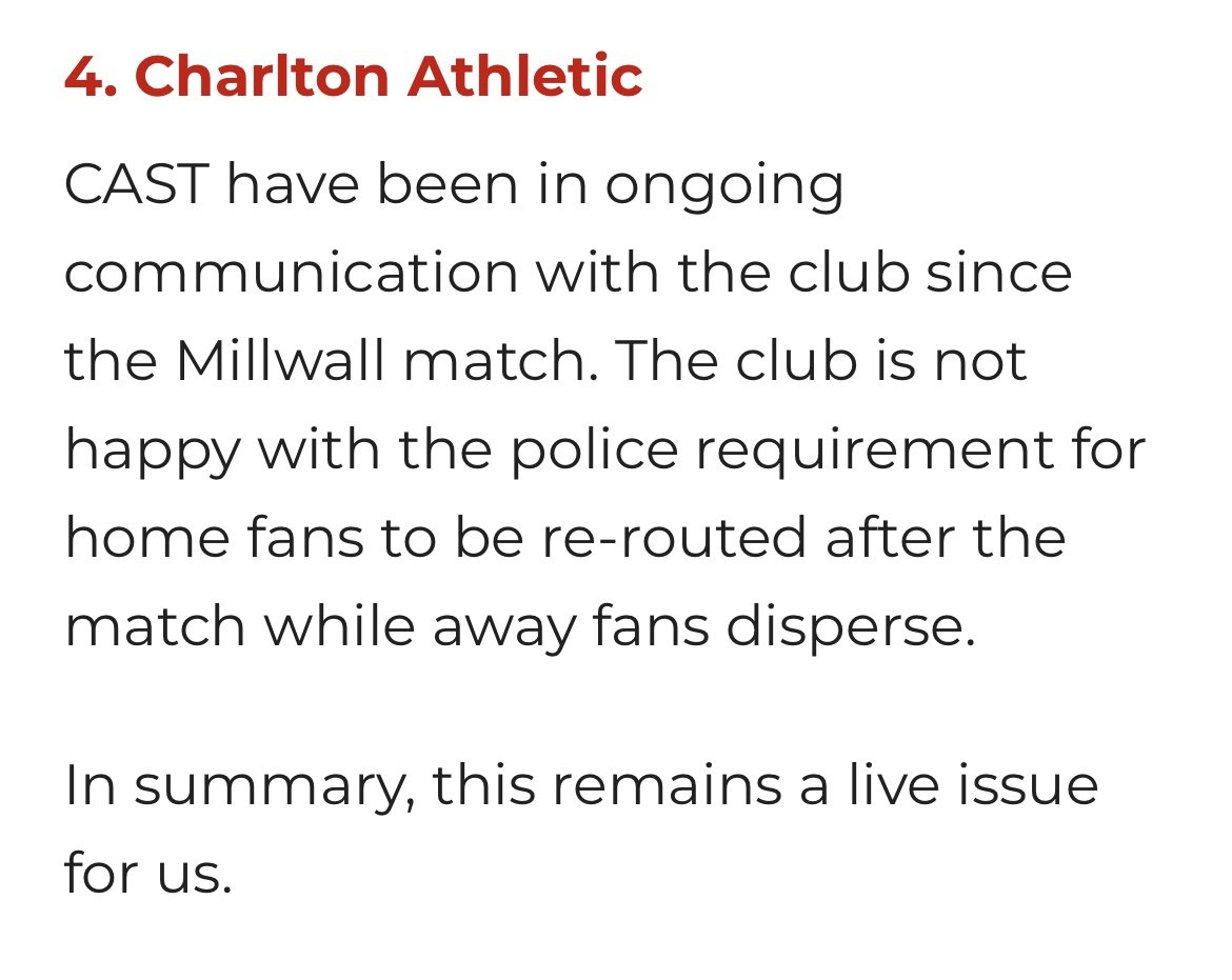 Thanks for the update. Quick question, is "...it was not policy to hold fans in the stadium because it caused more safety concerns than it solved" specifically regarding Charlton v Millwall, any games at the Valley, or the Met's general policing principles for football matches? And does that mean our fans won't be getting held back at the New Den in January?0