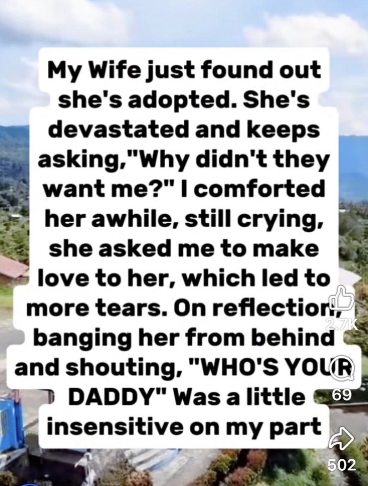 Guy: I don't, my dad had a stutter and the guy who filled out my birth certificate is a jerk7 -
