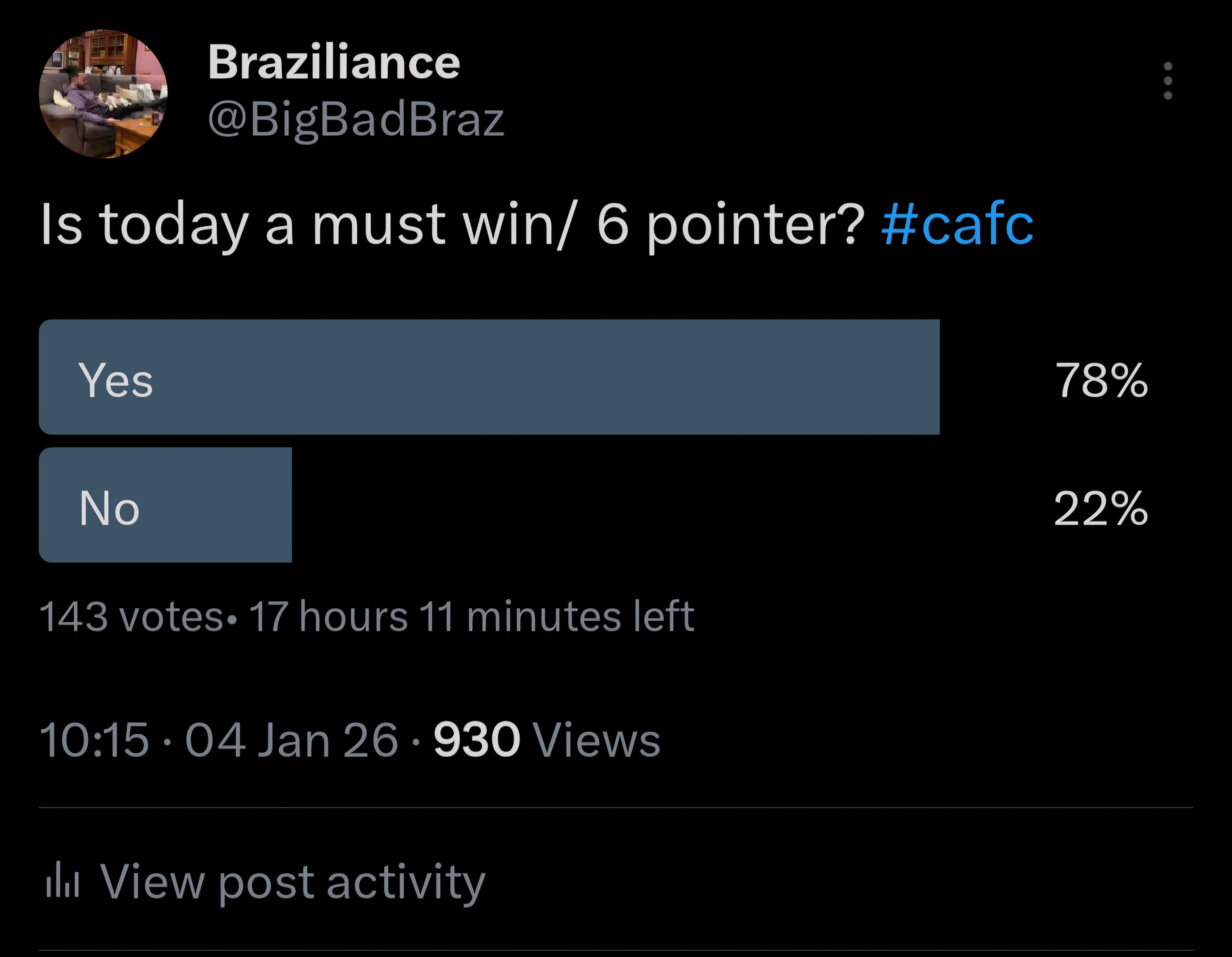 Hold on - a “must win” and a “six pointer” are different things. Today, Pompey and Norwich were six pointers but they weren’t must wins.Braziliance said:Disgraceful result after being 2 up, disgraceful.