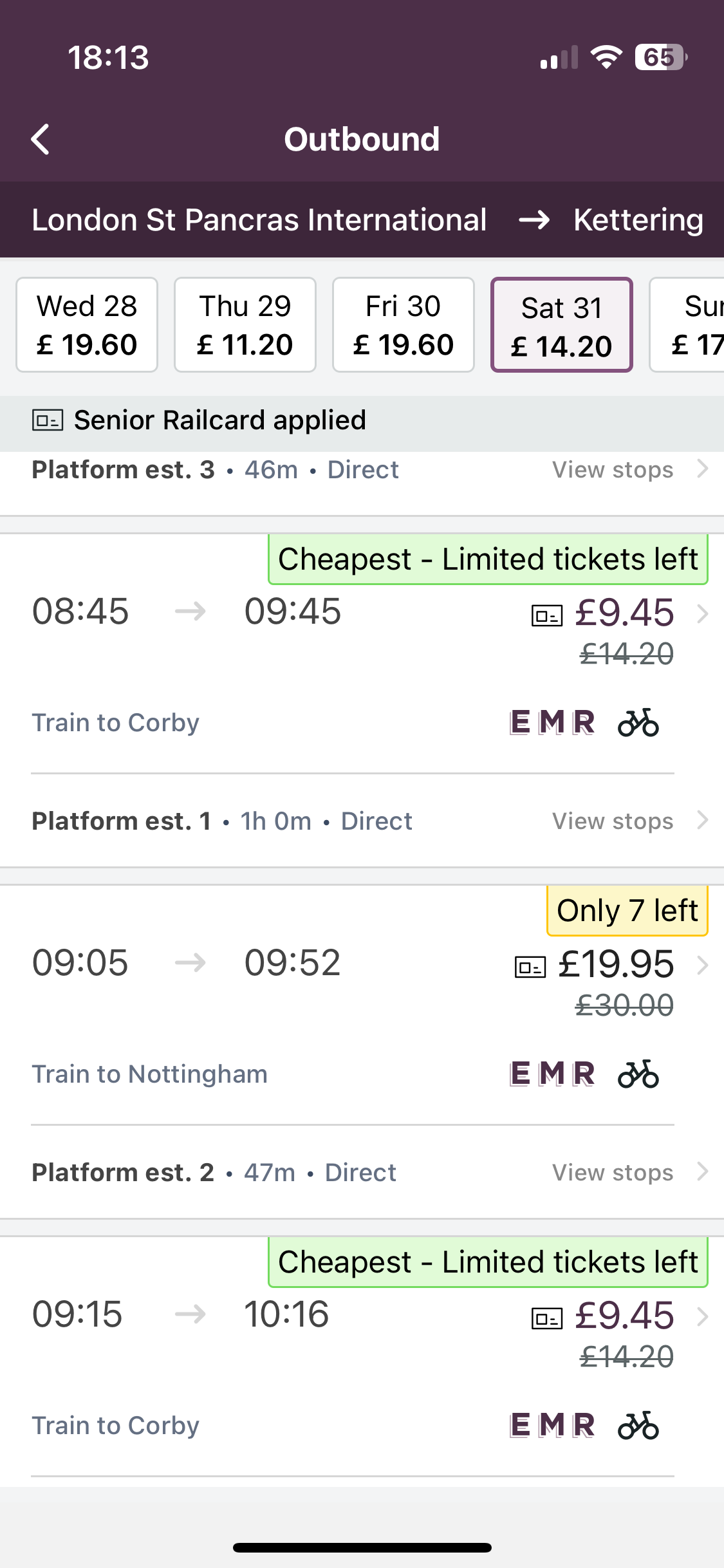 what trains are these for? looked on split ticketing website and not much saving.AFKABartram said:Coming out £55.40 on Trainline mate