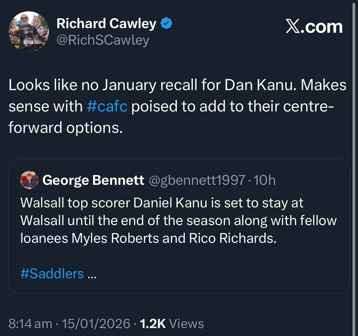 GoodCallumcafc said:We’ve told Walsall that Kanu is staying there for the season according to Walsall’s manager
