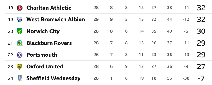 Any team that finishes below Portsmouth or Oxford will be relegated. I'm confident they'll be the two teams who go down with Sheff Weds.