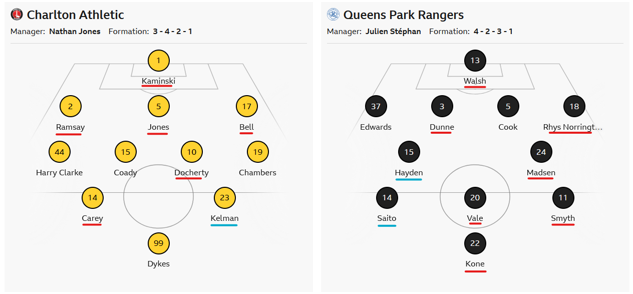 Charlton: Kaminski; Ramsay, Jones, Bell; Clarke, Coady, Carey, Docherty (c), Chambers; Kelman, Dykes