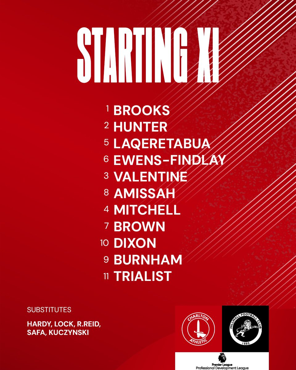 Brooks getting a game along with Valentine and Burnham from the u18s and the trialist, presumably the Dorking winger.