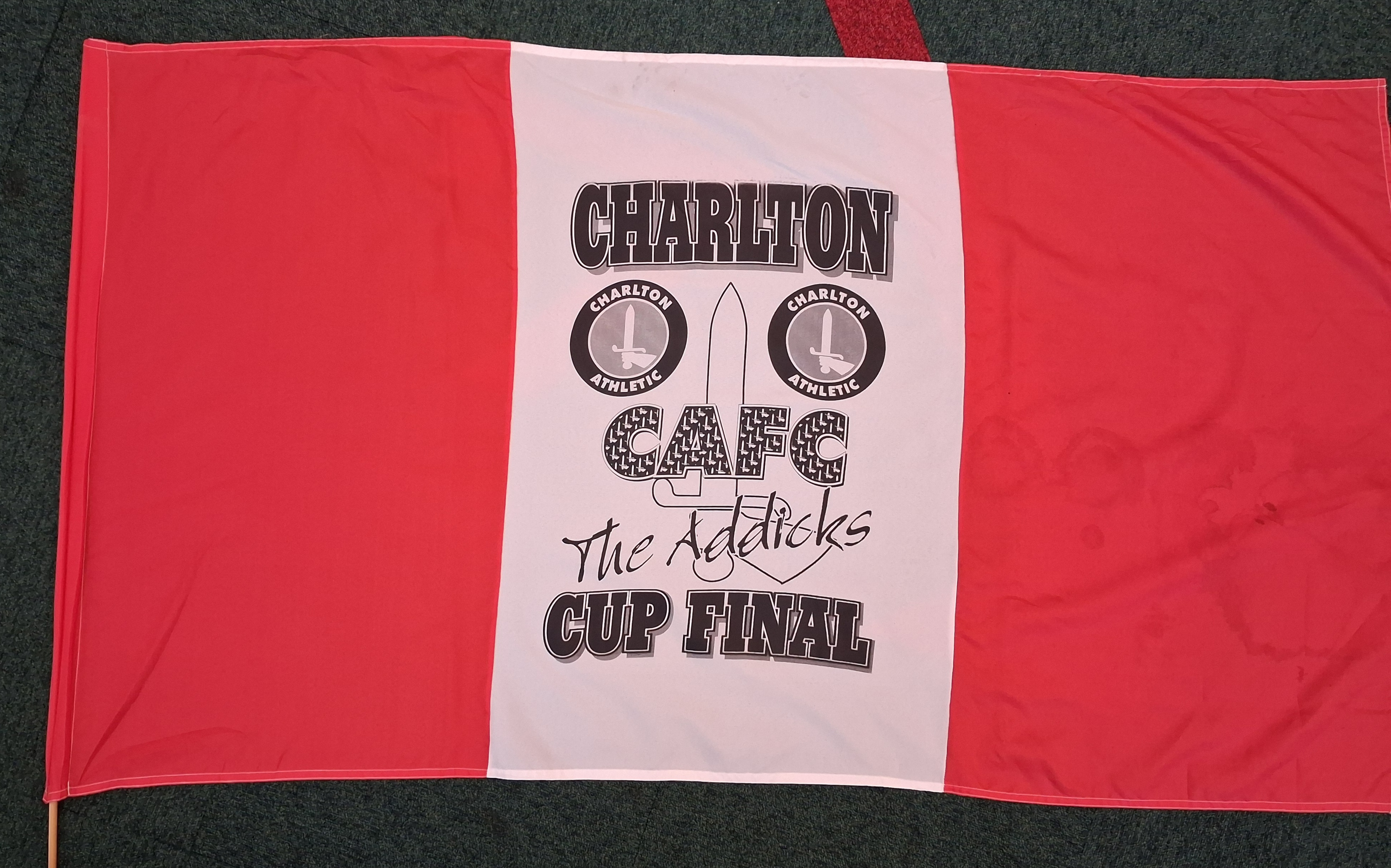 Journalist & Podcaster @LouisMenddonated this #cafc flag to the museum but he, and we, aren't sure which final it's from. Not the Full Members and not 2025 so must be 1998 or 2019 but which is it?