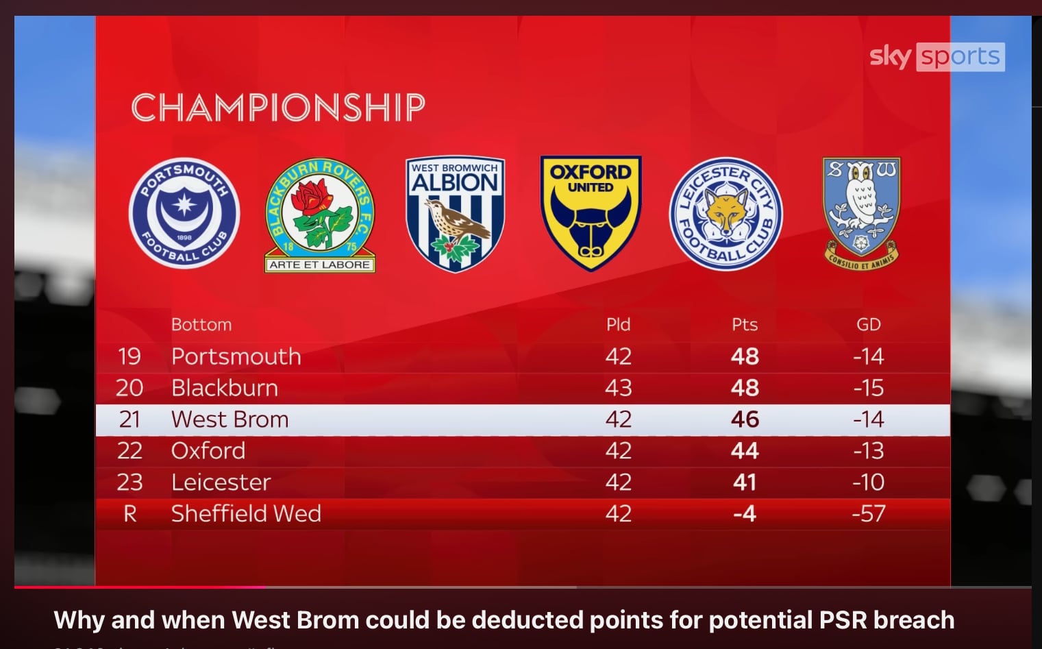 stackitsteve said:Sky Sports have a lot more faith in us than any of our fans.During the discussion on West Brom (5 or 6 minutes of which has been uploaded to YouTube) they never mention us once. They do however, repeatedly mention the “five clubs on tenterhooks waiting for a decision”